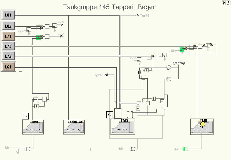 - L81 og L82 kan ta produkt fra alle tanker i Tgr80. Denne tankgruppene inneholder tanker med rømmeprodukter og vil ikke kunne legges ned på linjen, for tømming, før produktet er klarert for å tappes på beger.